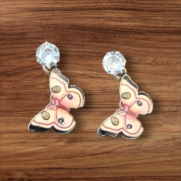 Add a playful pop of color and whimsical charm to your look with the Blush Bloom Butterfly Earrings by Ikshaya. Inspired by Korean fashion aesthetics, these statement earrings feature a textured golden butterfly stud paired with a luminous, iridescent pink resin drop that dances with light at every angle.