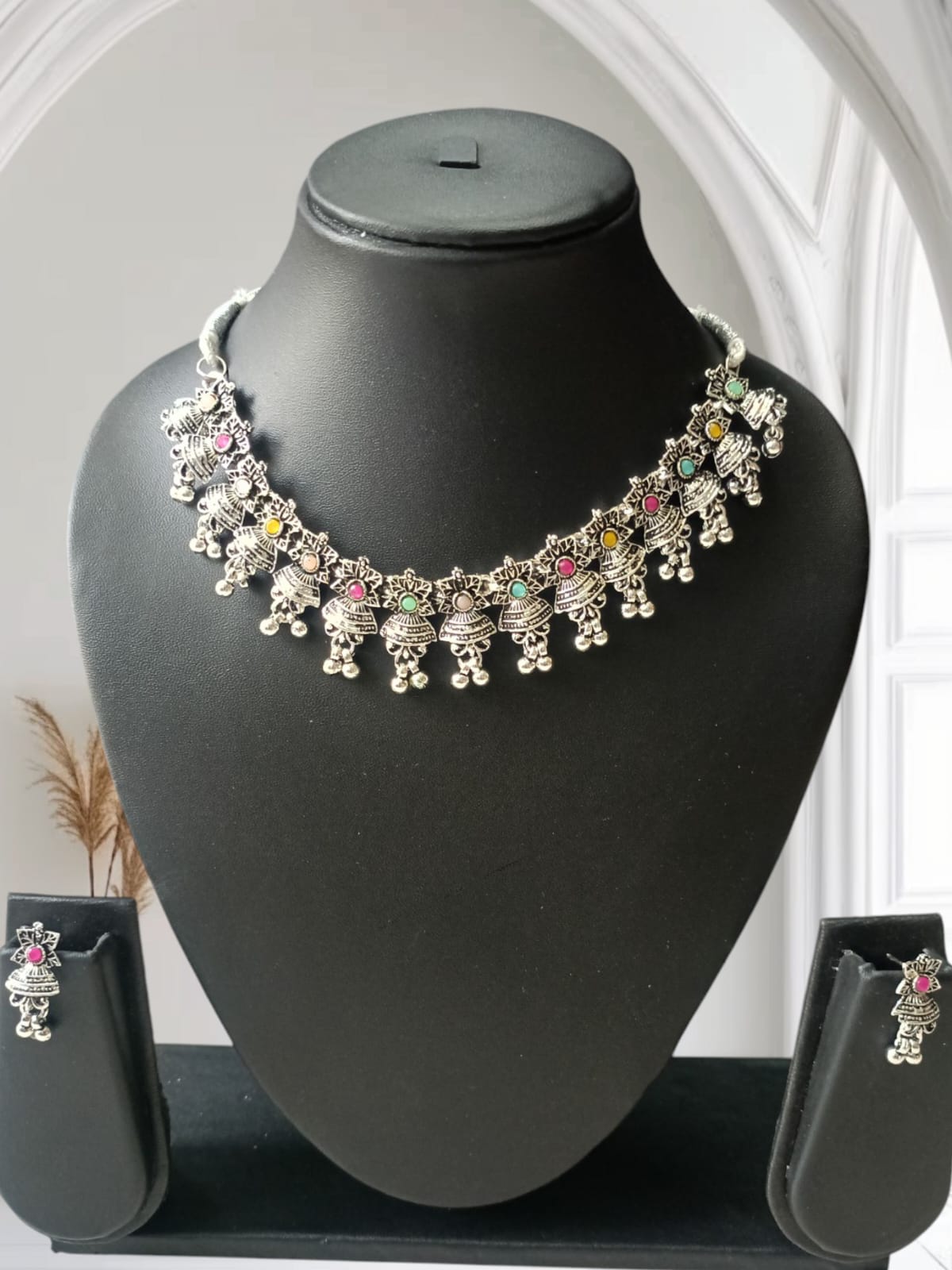 • Complete Set: Includes a matching pair of oxidised earrings for a coordinated and stylish appearance.