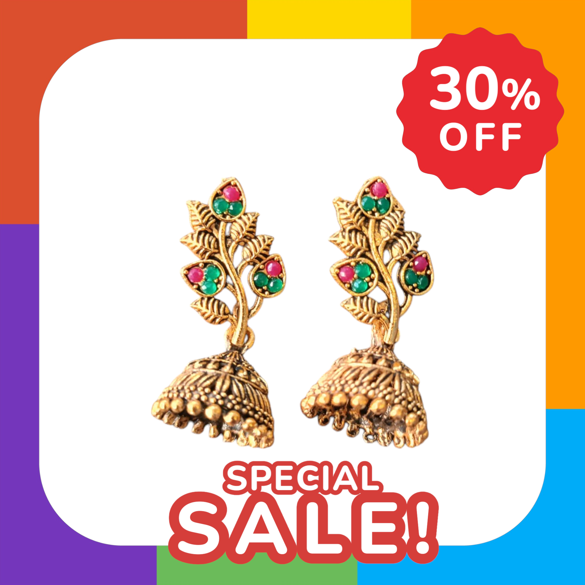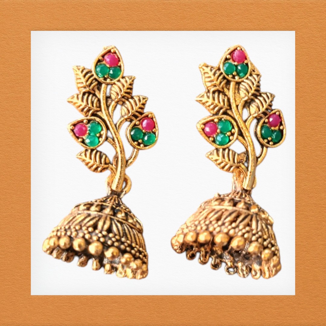 Finished in a rich golden polish and intricately detailed by skilled artisans, this jhumki is the perfect statement piece for festivals, weddings, or everyday glam. The lightweight design ensures all-day comfort while the nature-inspired motif adds a refreshing twist to classic jewelry.