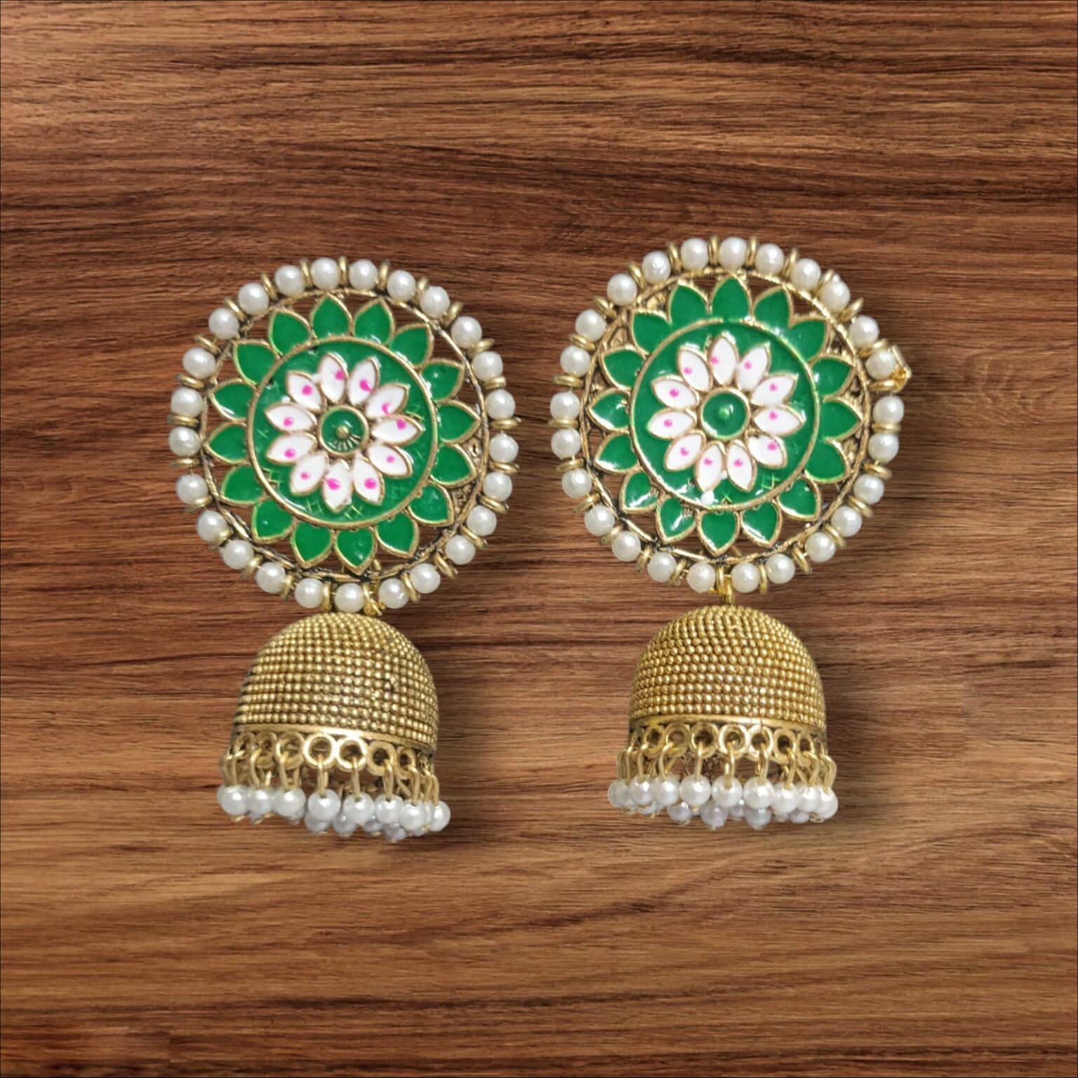 Style Tip:Â Let these jhumkis be the centerpiece of your ensemble by pairing them with solid-colored ethnic wear or fusion outfits for a truly eye-catching look.