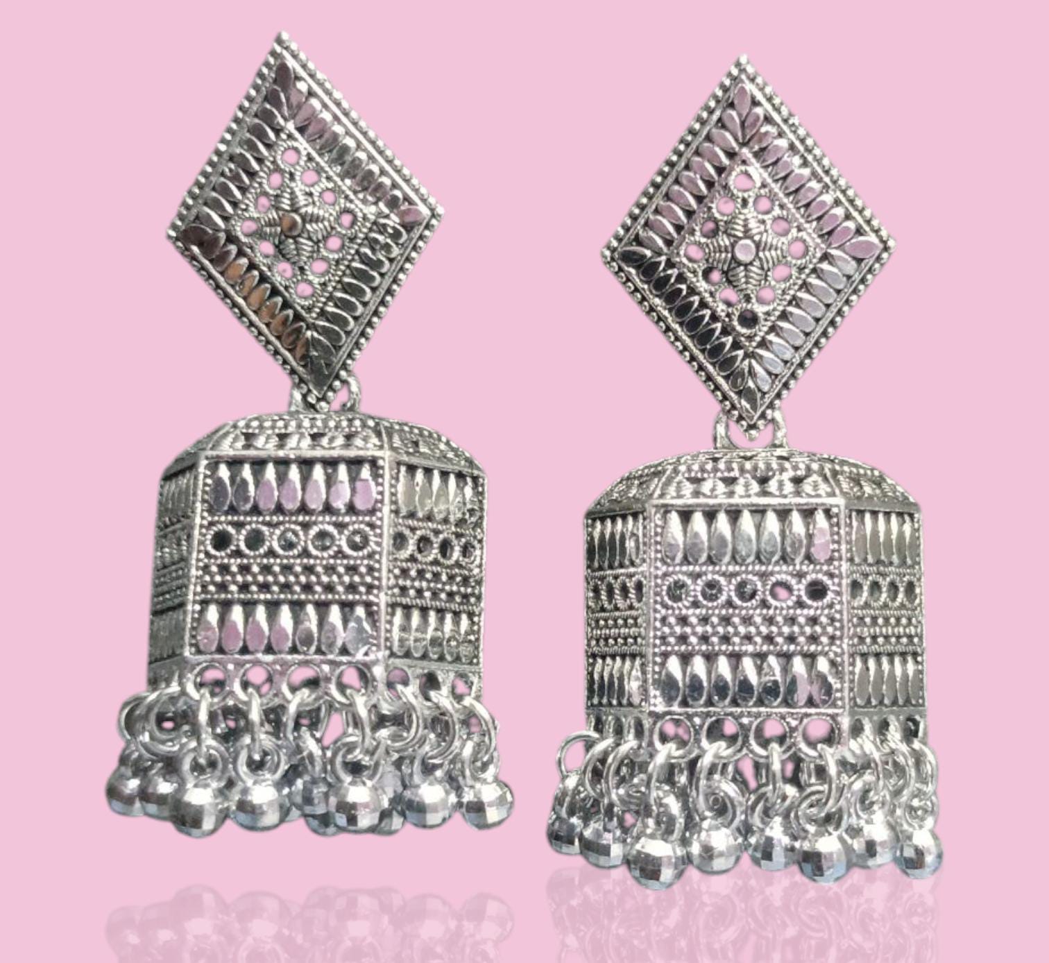 The Silver oxidised finish gives the earrings a regal vintage feel, while the intricate craftsmanship showcases artisanal excellence. Whether you’re heading to a festive celebration, a cultural event, or a family gathering, these earrings are your perfect companion to make a graceful style statement.