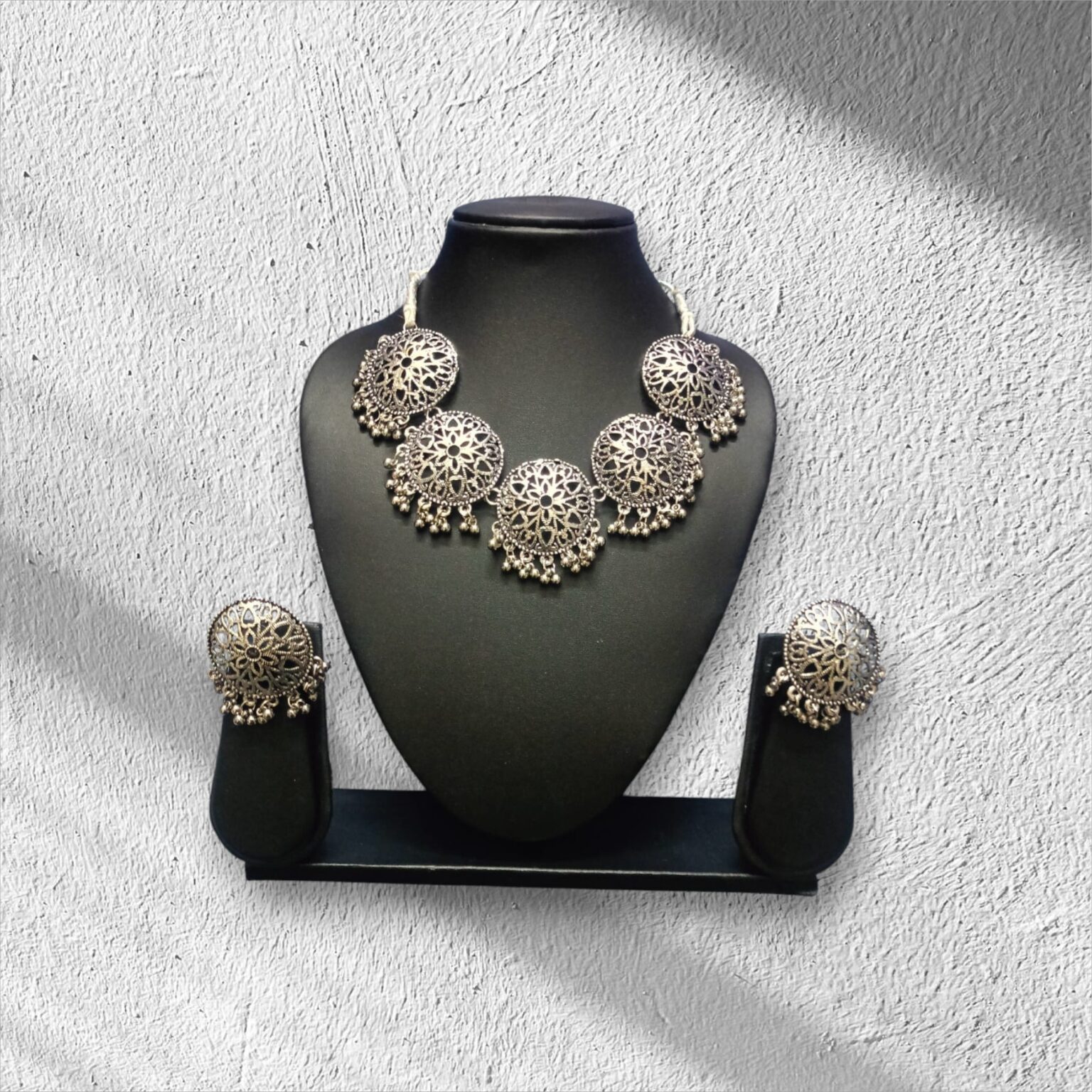 Complete Set:Â Includes a matching pair of oxidised earrings for a coordinated and stylish appearance.
