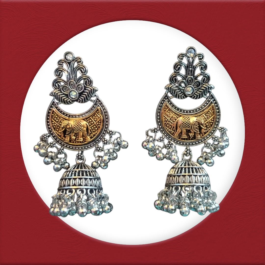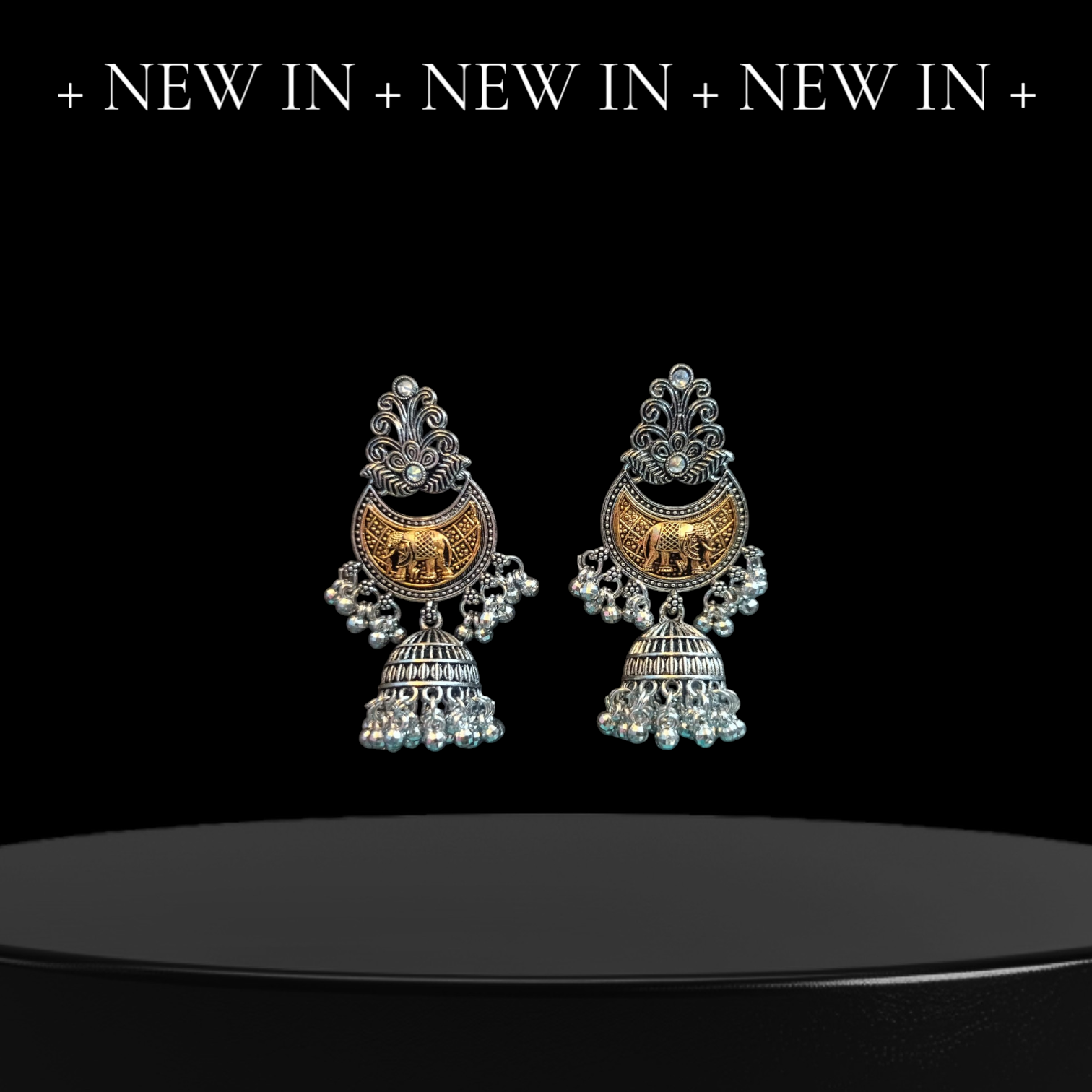 Add a touch of ethnic elegance to your jewellery collection with IKSHAYA’s Timeless Oxidised Jhumki Earrings. Handcrafted by skilled artisans, these exquisite jhumkis showcase the richness of traditional Indian design blended with a rustic, vintage charm.