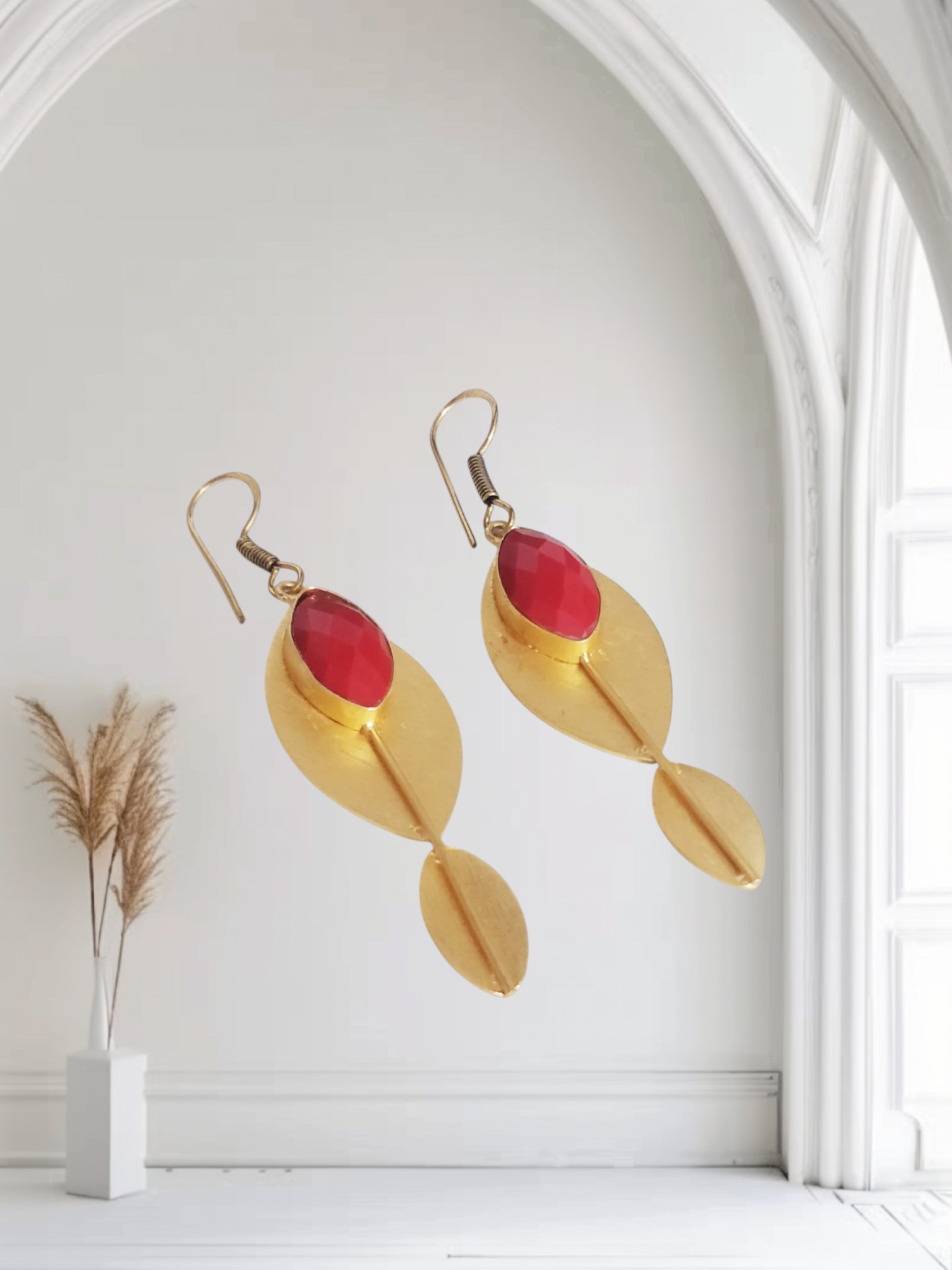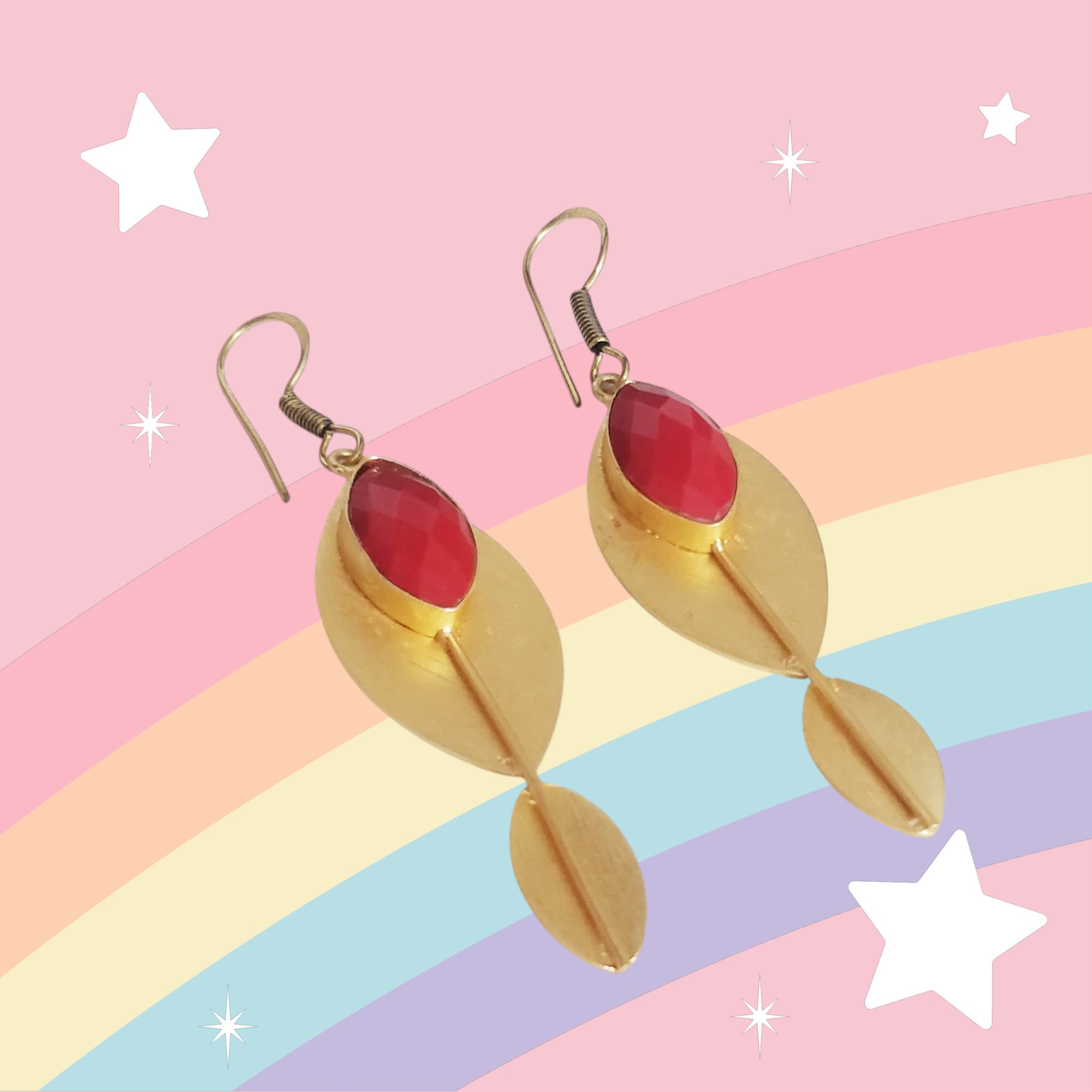 Add a touch of sophistication to your jewelry collection with these gold polished brass earrings with red stone – a must-have accessory for every jewelry lover.
