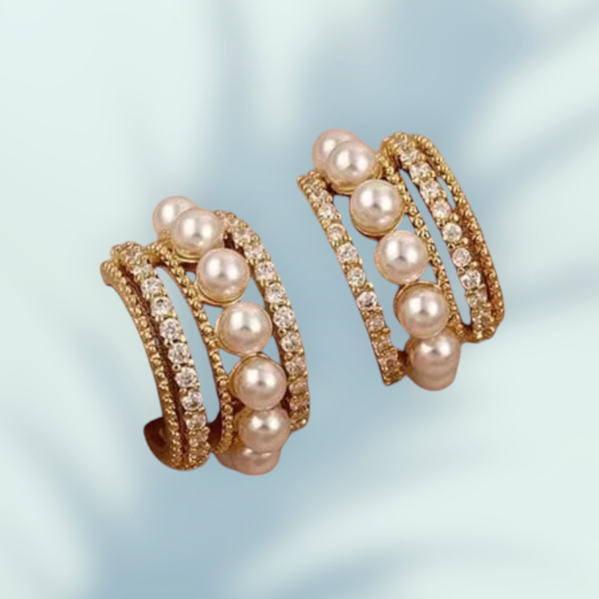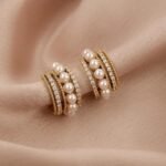 Crafted in a delicate golden tone, the half-moon shape curves gently around the ear, creating a soft statement that’s subtle yet striking. The combination of pearls and clear stones offers the perfect blend of tradition and trend.