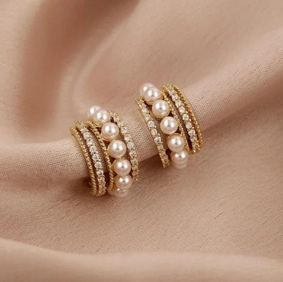 Elevate your everyday elegance with Golden Halo Korean Earrings, a refined half-circle design adorned with lustrous pearls and glimmering stones—exclusively brought to you by Ikshaya. Inspired by the sleek charm of Korean fashion, this earring set radiates minimalistic sophistication, making it a must-have accessory for the modern woman.