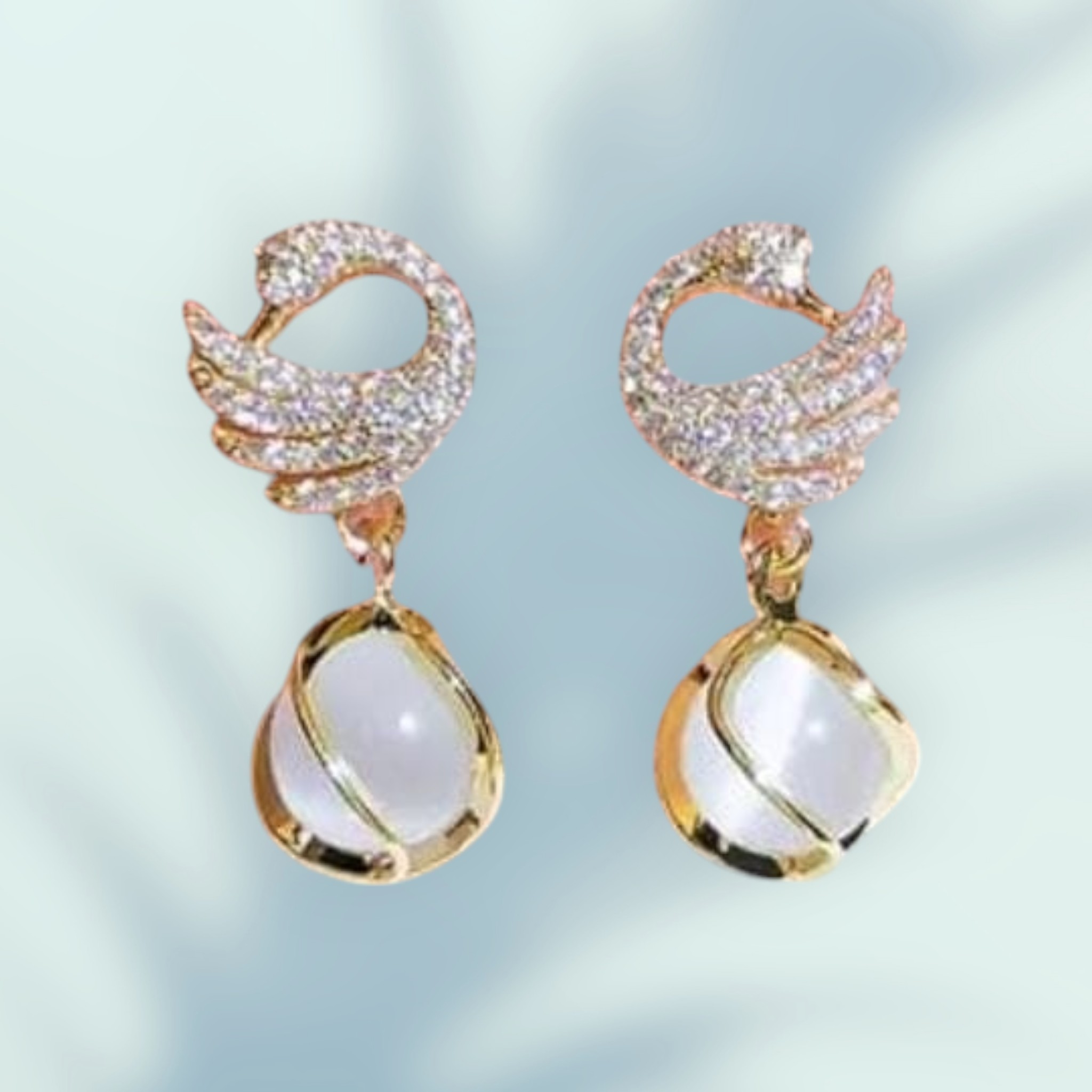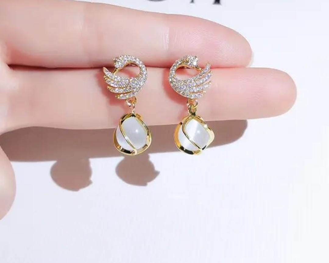 The swan, a symbol of beauty and purity, pairs perfectly with the shimmering drop to create a look that’s both dreamy and polished. Whether you’re dressing up for a dinner date, wedding function, or a classy evening, these earrings are your ultimate style companions.